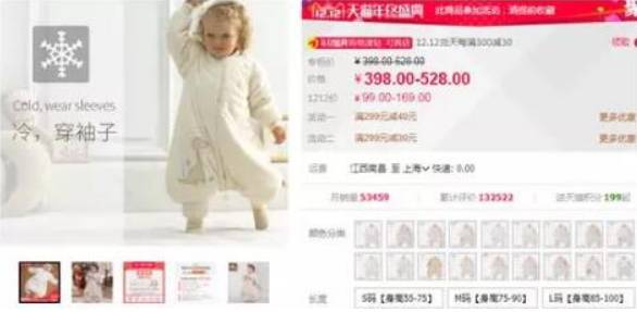 第二个案例我们拿母婴用品来说(婴儿睡袋),我看过一家天猫店的一个链接连续卖了3年,且销量还很高。他的做法其实很简单,就是不断的在这个链接上增加SKU,因为大家都知道,随着生活水平的提高,婴儿用品的东西也越来越多样化、品质化,所以每年这个商家都是新增一些今年流行的样式在这个链接里面,并且厚度也是有选择的,厚的适合北方,薄的适合南方,并且还有一体式的(一体式的意思是:内胆可拆卸式的,既满足了冬天的需求,又满足了春天的需求),所以对于他来说主卖的产品这个是没有衰败的(至少目前还是这样),毕竟每天都是有新生儿的诞生,他要做到只是维持并且逐步增长自己的销量,确保自己的排名就可以了。