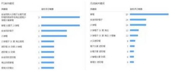 找出这些竞品的词我们也不能直接用,我们要通过词的转化、搜索量分析这些词的优质程度,这里不多说。知道优质程度以后,我们要分析优质关键词的人群。用“沙滩帽子女 夏 海边”举例,我们在人群搜索中搜索这个词。