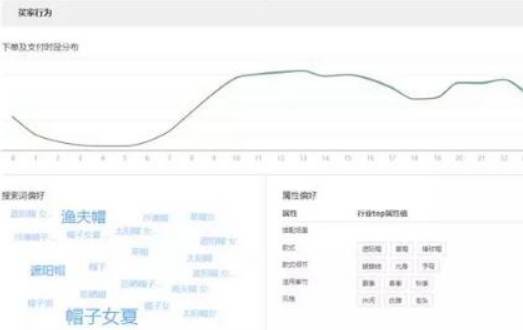 我们从这些筛选的数据可以看到“大檐草帽”的人群职业分布、关键词偏好、喜欢的品牌已经下单时间段等数据。有了这些我们基本上对我们的人群有了一个初步的了解。