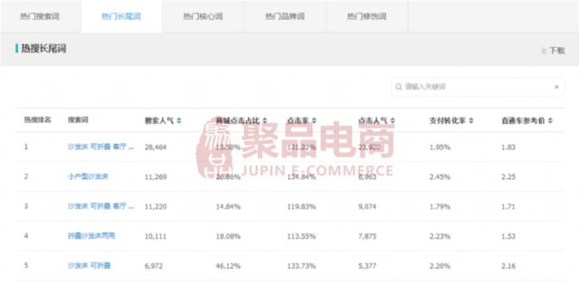 热门长尾词:热门长尾词相对于热门搜索词,热度相对不高。这类关键词更多的是加上了宝贝的属性来进行组合形成的搜索词,相对来说更精准