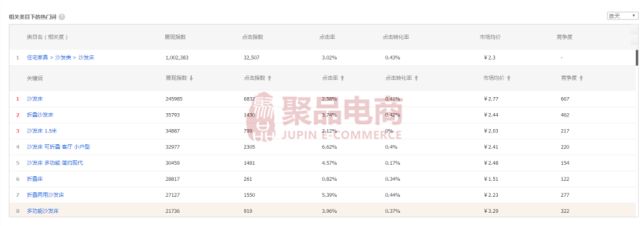 家具类目的关键词偏少,所以在选词上一定要添加精准的关键词。在新推宝贝的情况下,缺少数据磨合期,质量得分都为基础分比较低的情况下,不能跟同行有一定基础分的宝贝去抗衡,所谓知彼知己,百战百胜,如果一开始就添加一些竞争性高的关键词(例:展现量很高的关键词),那就等于是鸡蛋碰石头,得不偿失所以我们在第这关键的步骤里面要注意:选好-挑准-关键词(参考的数据指标-相关度高、展现指数低、点击率高)。以下是除了从系统推荐词加词外比较常用的找词方法
