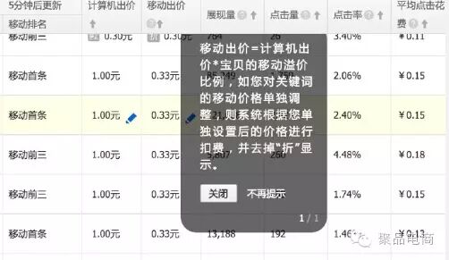 功能点使用:对关键词改价上的指导作用更加直观,可以确认目标位置后,预估建议价格是否超出预算,且同时进一步通过系统给出的展现量和点击量提升的占比来了解出价的性价比。